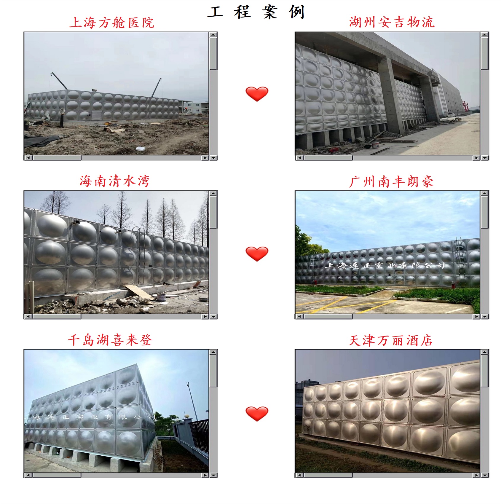 由單元矩形成型薄板或凹凸任意拼裝焊接而成,可根據不同場所要求組成多邊形、階梯型、L等形態(tài)各異的不銹鋼水箱。該水箱具有新時代特征與漂亮外觀、水箱線條流暢,立體感好且能美化市容,是引領水箱界的新潮流。